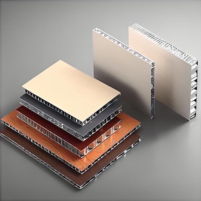 Hliníkový voštinový stěnový panel je sendvičová konstrukce sestávající ze dvou vrstev hliníku a voštinového jádra. Panel je vyroben hlavně z vysoce kvalitní hliníkové desky ze slitiny 3003H24 nebo hliníkové desky ze slitiny manganu 5052AH14 jako základního materiálu, s tloušťkou panelu 0,8 ~ 1,5 mm a tloušťkou spodní desky 0,6 ~ 1,0 mm. Voštinové jádro je vyrobeno z velmi tenké hliníkové fólie 3003 o tloušťce 0,04~0,06 mm a délce strany 5~6 mm. Má šestihrannou strukturu voštinových otvorů s otvory navzájem spojenými. Celý proces zpracování je dokončen v moderní továrně pomocí technologie lisování za tepla.