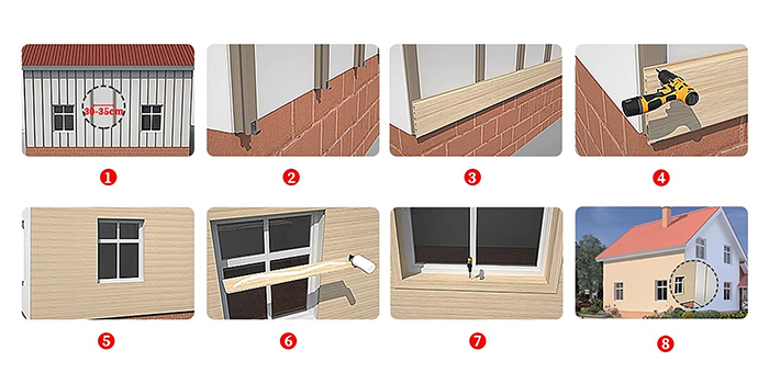 Obytné budovy: Vhodné pro dekoraci venkovních stěn vil, bytů a domů.