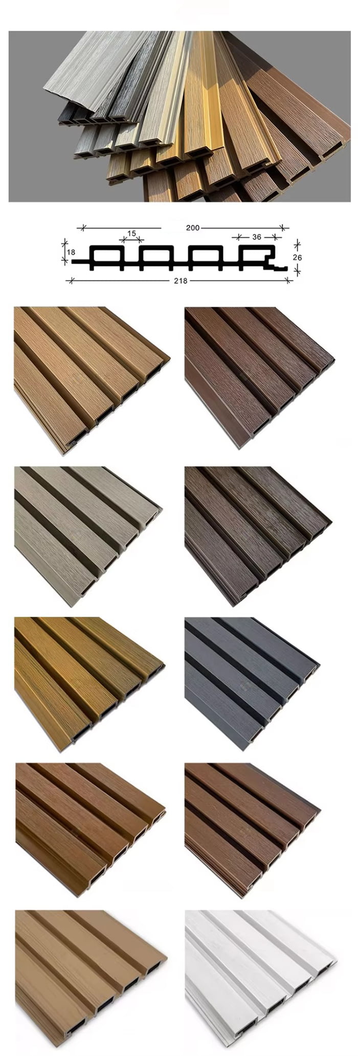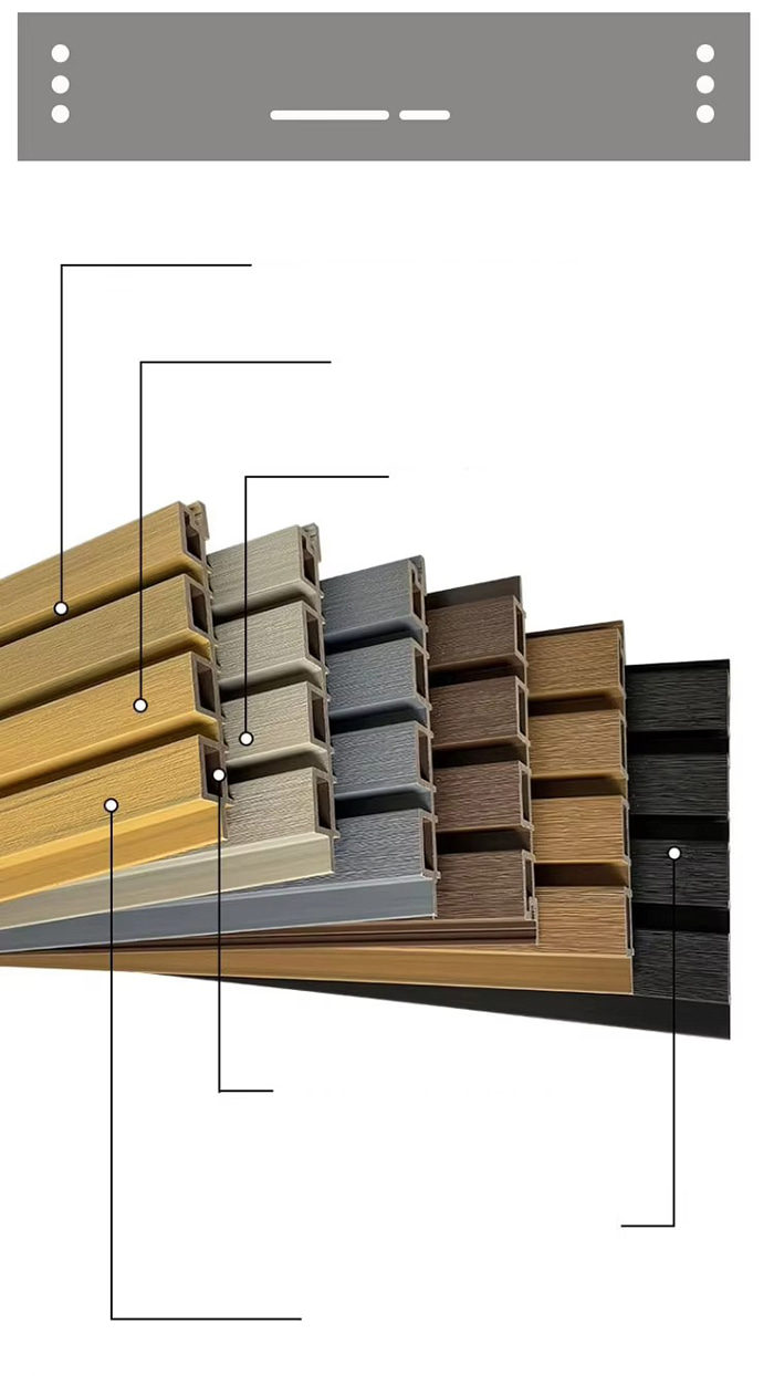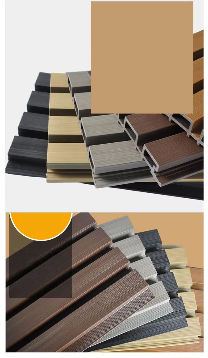 Venkovní deska WPC je speciální venkovní dekorativní deska vyrobená z dřevěných nebo bambusových vláken jako základní suroviny, smíchaná s PVC pryskyřicí, práškem uhličitanu vápenatého a anti-ultrafialovými přísadami prostřednictvím vysokoteplotního a vysokotlakého procesu. Povrch využívá UV vytvrzovací nátěr nebo vysoce přesnou technologii přenosu imitace dřeva/kamene, která kombinuje texturu přírodního dřeva s odolností plastu vůči povětrnostním vlivům a má vlastnosti voděodolné a odolné proti vlhkosti, plísním a antibakteriálním, anti-ultrafialovým, protipožárním atd. Je vhodný pro scény, jako je zahradní krajina, dekorace venkovních stěn, venkovní nábytek a venkovní nábytek šetrný k životnímu prostředí.