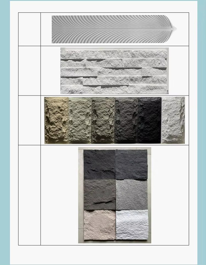 PU stěnová deska je polymerní materiál na bázi polyuretanu (PU). Povrch je obvykle pokryt vysoce pevným nátěrem, který má vlastnosti odolnosti proti kyselinám, sluneční ochrany a UV odolnosti. Může být vyroben podle textury skutečného kamene, dřeva atd. a speciálního řemeslného zpracování, s realistickou a jemnou texturou. PU nástěnná deska se používá hlavně k dekoraci stěn a může být aplikována na vnitřní a vnější stěny budov.