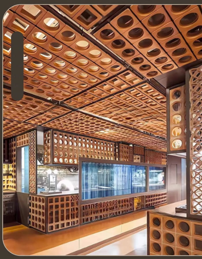 Architektonické dekoraceVnitřní stěna/strop: Návrhy, jako je kartáčování kovu a přenos dřeva, zlepšují texturu prostoru a jsou vhodné pro hotely, výstavní haly, vily atd.