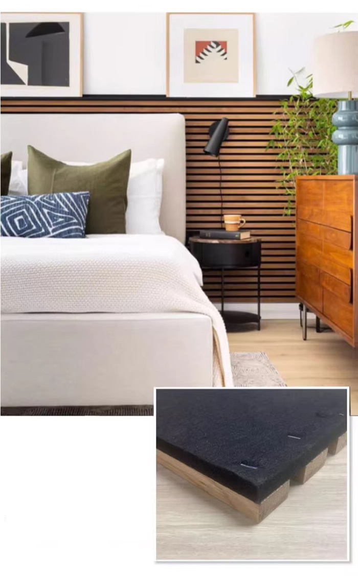 Porézní vrstva: Dřevěné vlákno a zvuk pohlcující bavlna jsou složeny, s porézností ≥30 % a distribucí velikosti pórů 0,5-2 mm pro optimalizaci pohlcování zvukových vln.